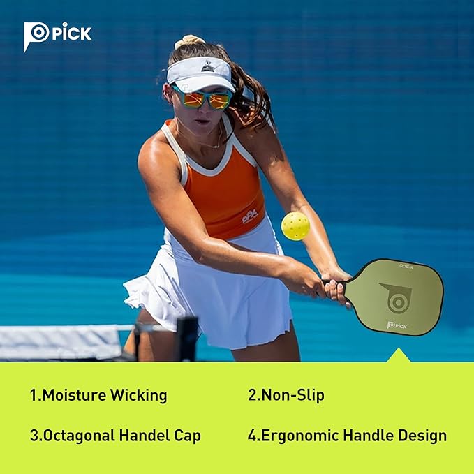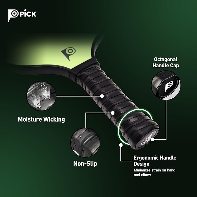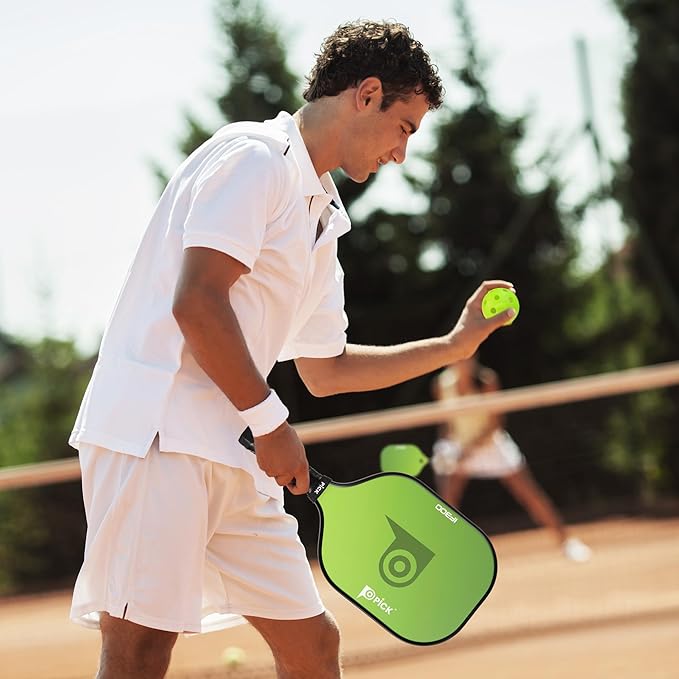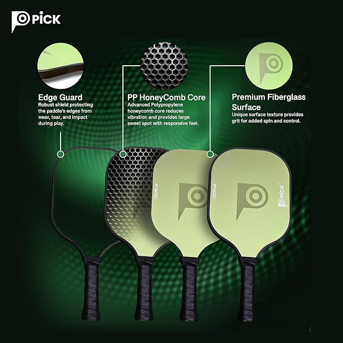 - High Quality Material- The paddle face is made with premium fiberglass material that provides grit for exceptional control, making it easier for players to hit accurate shots. The Polypropylene honeycomb core reduces vibration and provides large sweet spot with responsive feel.