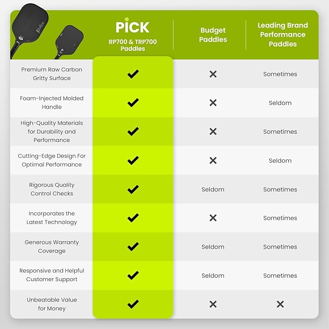 - IDEAL FOR INTERMEDIATE TO PROFESSIONAL LEVEL PLAYERS: The RP700 is designed for the versatile players looking for excellent all-court performance. Whether you're smashing overheads, volleying at the net, or executing precise dinks, this paddle will be your trusted partner.
